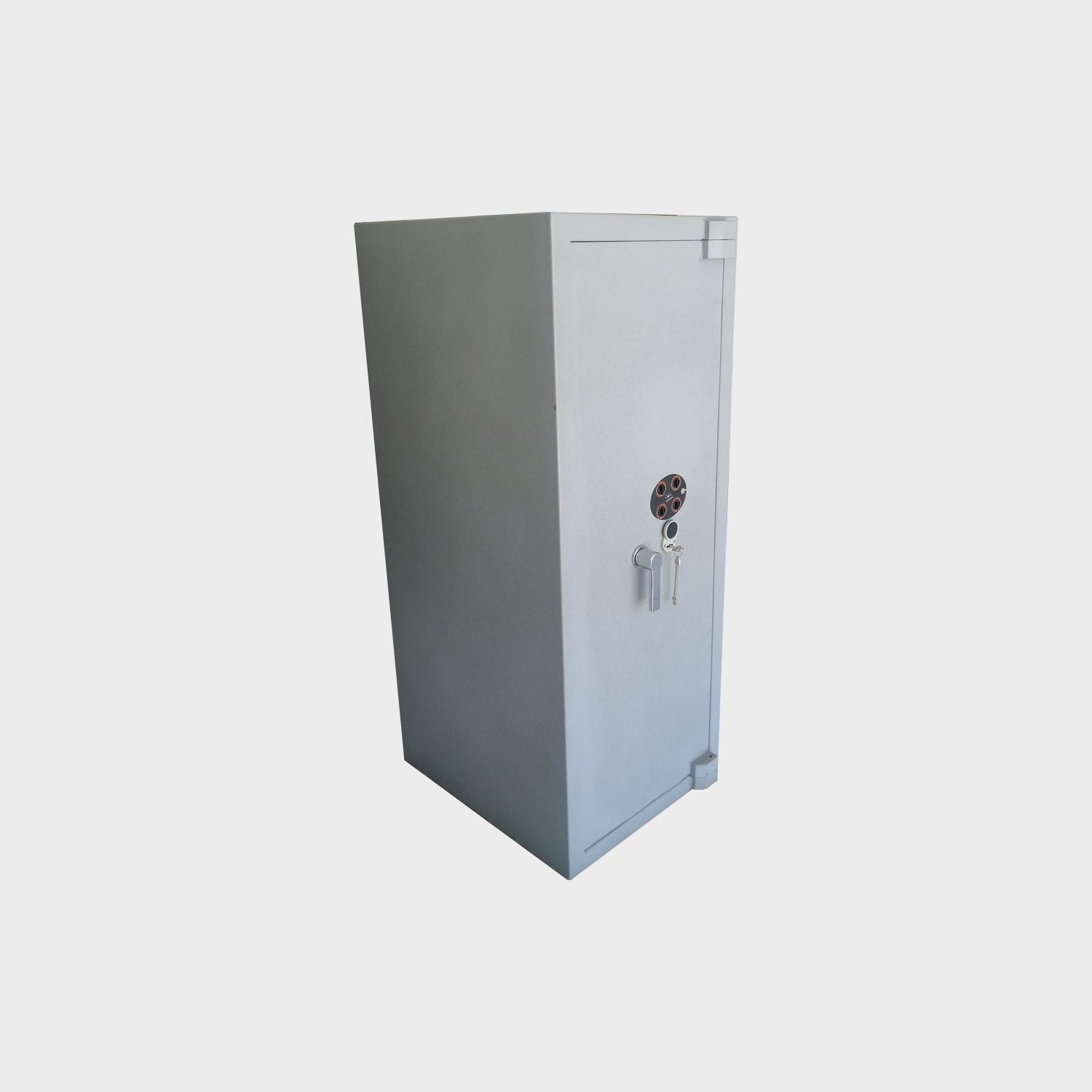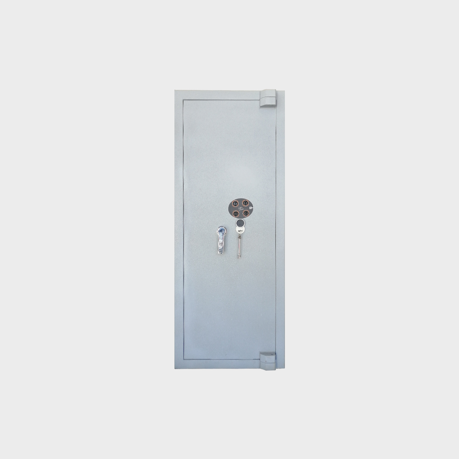 Une poignée ergonomique permet de commander aisément le maniement des pênes et le mouvement de la porte. Le mouvement de cette poignée est condamné par une serrure à clé de haute sécurité à double pannetons (certifiée VDS classe A) et d’une serrure à combinaison à 4 chiffres.