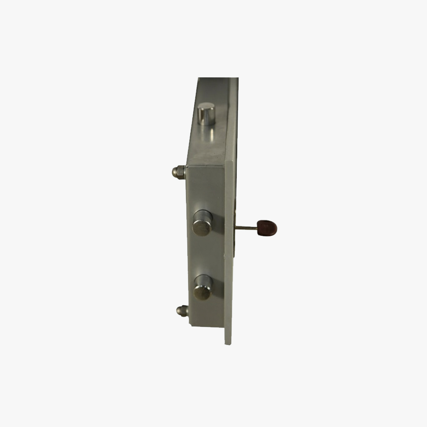 Mécanisme de serrure à pênes commandé et condamné par serrure de précision à 7 gorges, clé double pannetons et combinaison mécanique à 3 compteurs à 20 dents manœuvrables par des boutons. Protection anti-perçage au manganèse appliquée au mécanisme de la serrure.