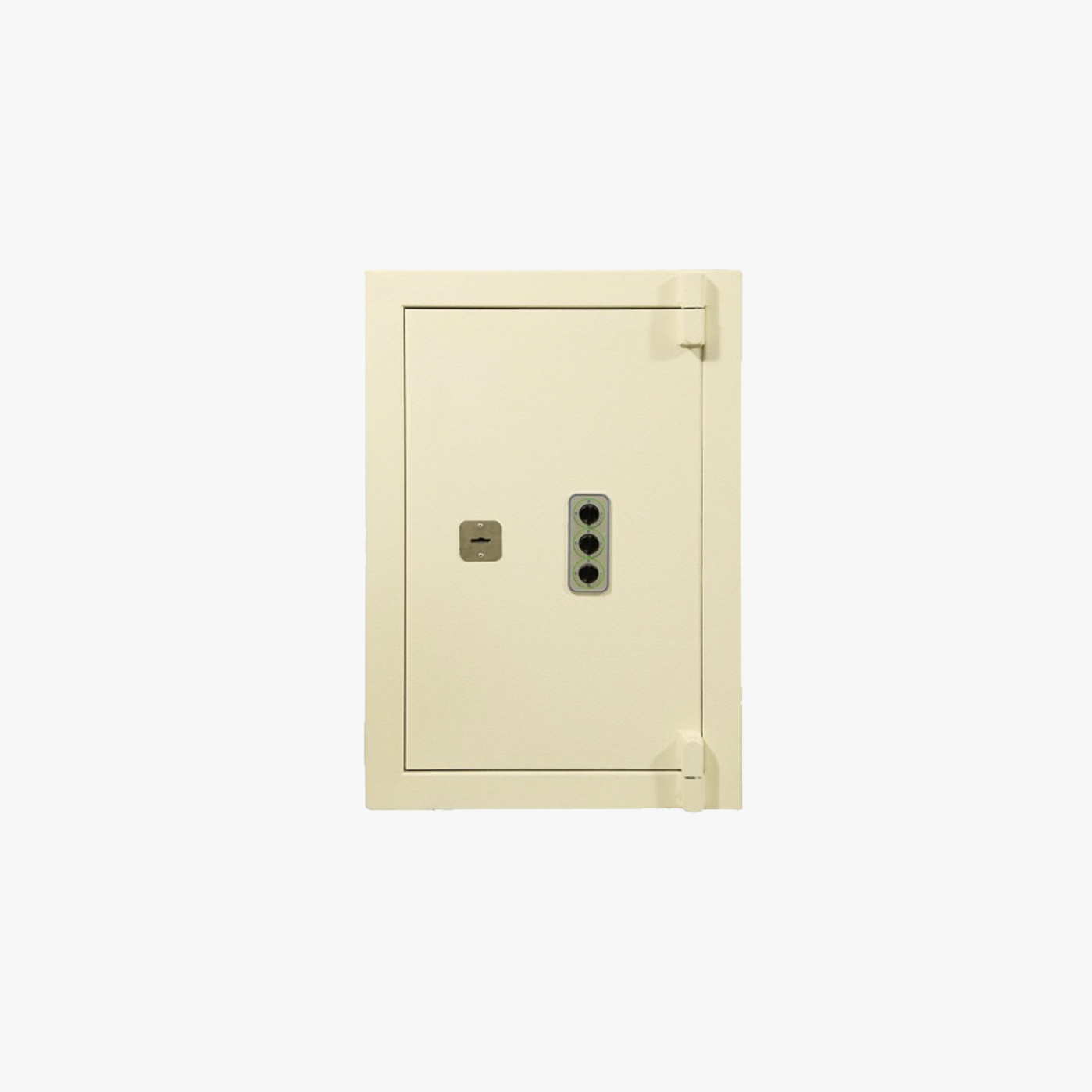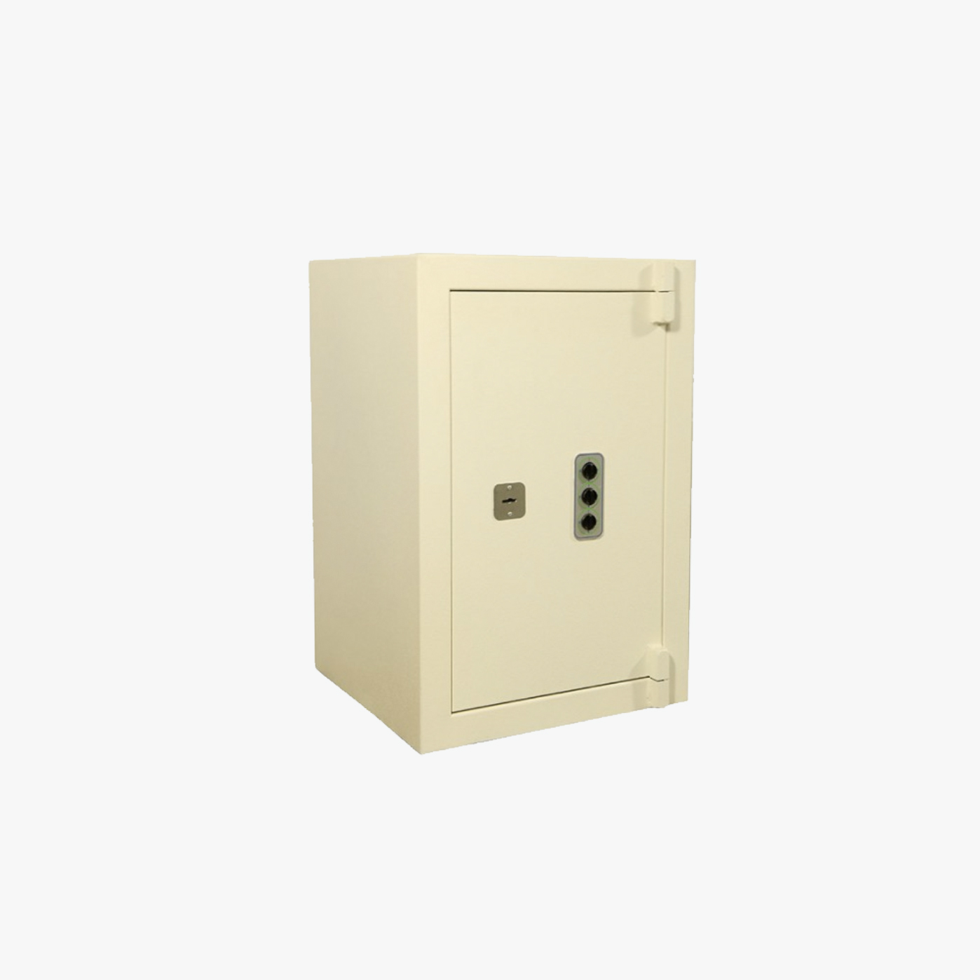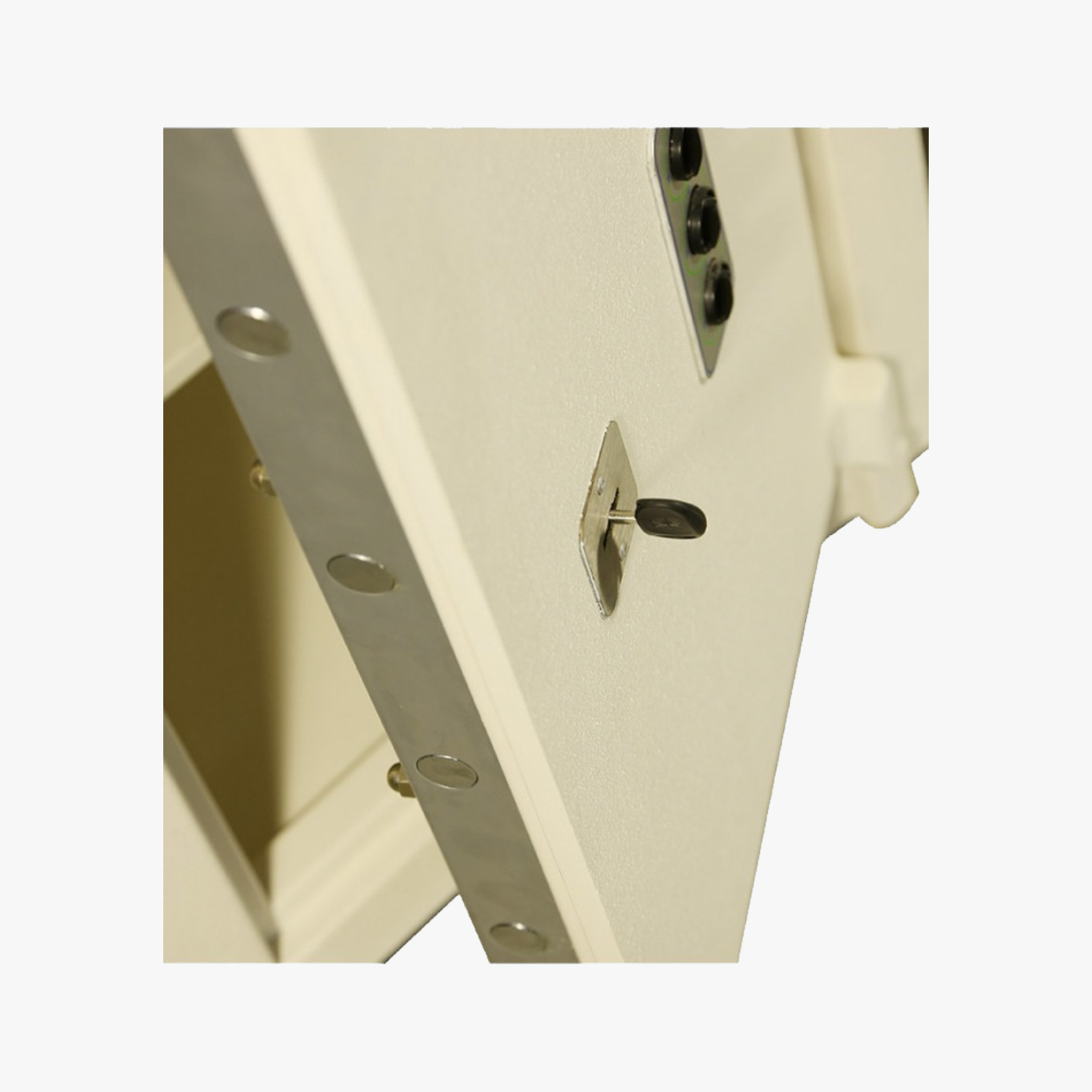 Système de condamnation efficace grâce à la serrure de précision à 7 gorges, clé double pannetons et combinaison mécanique à 3 compteurs à 20 dents manœuvrables par des boutons.